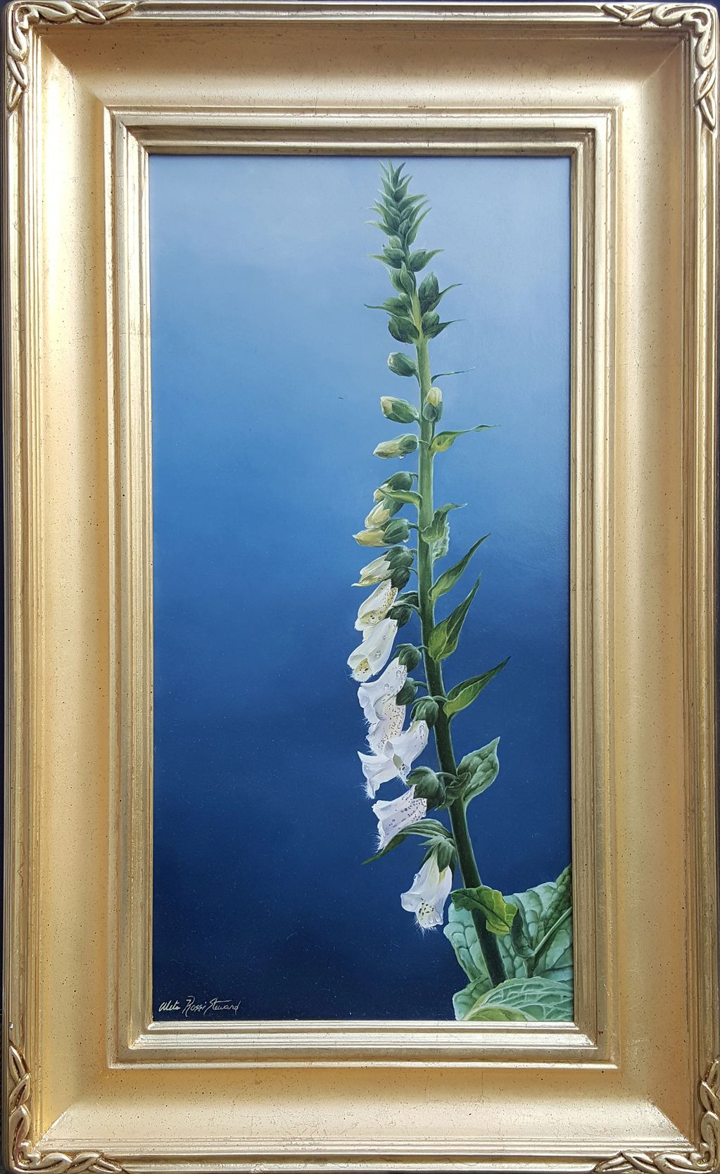 A lone Foxglove gracefully balancing in the breeze. The individual blooms hold a few leftover raindrops as the sunlight highlights their feathery edges . Another flower which grows in my gardens, they self sow, so I have many foxgloves "volunteering" in odd places.