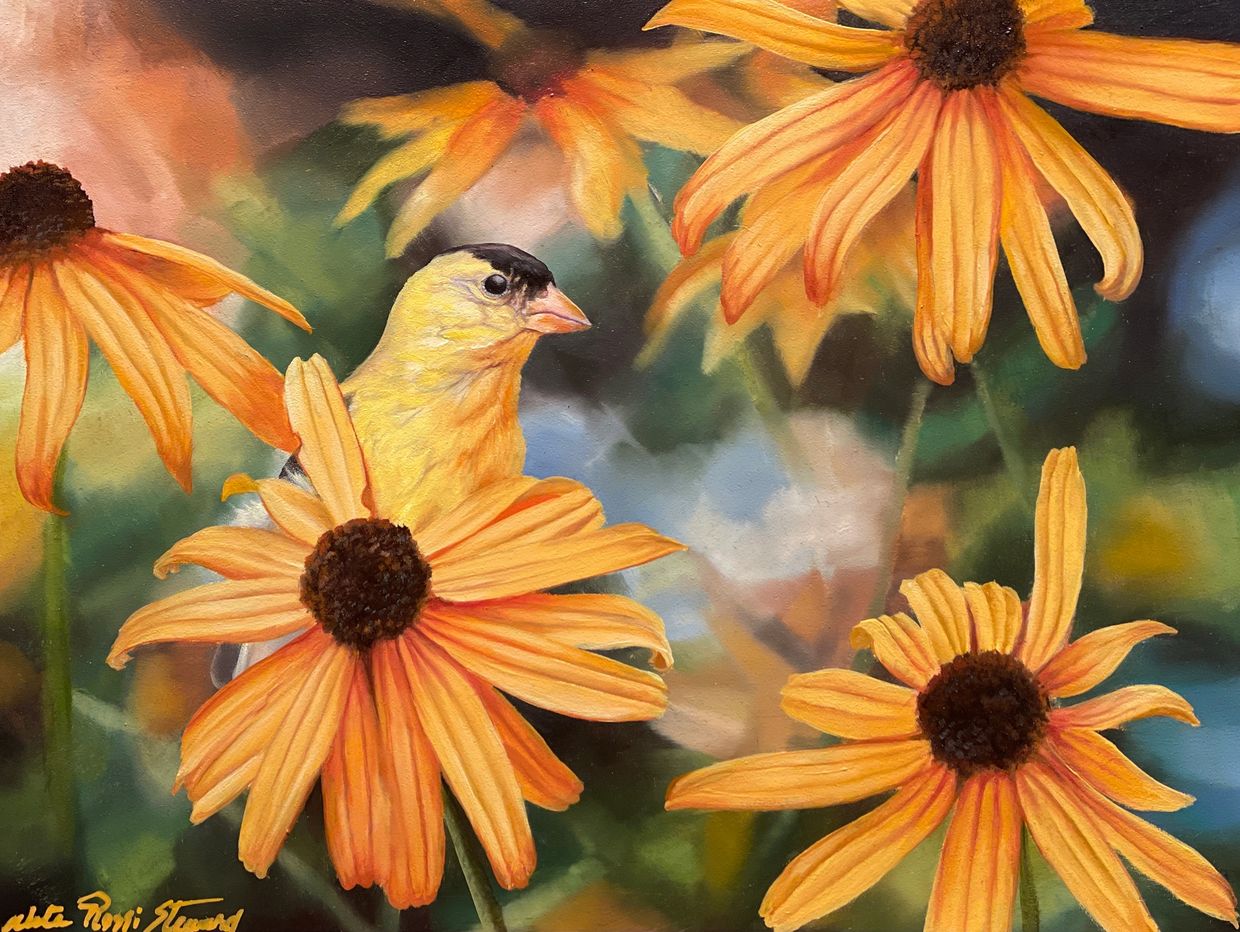This brightly colored Goldfinch is almost hard to see within the rudbeckia petals. In my backyard, he was having quite time pulling seeds out of the flower heads.